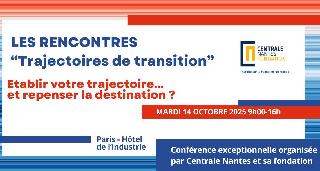 Centrale Nantes et sa Fondation organisent le 14 octobre 2025 à Paris une journée exceptionnelle : Les Rencontres “Trajectoires de Transitions”, consacrées aux enjeux de la compétitivité durable et de la transformation des modèles d’affaires.